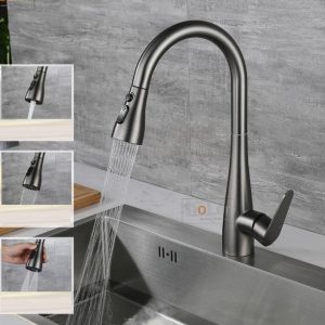 Vòi Rửa Chén Bát Nóng Lạnh VÒI RÚT N4005 ĐỒNG THAU PHỦ NANO XÁM ĐEN