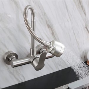 Vòi rửa bát gắn tường đôi nóng lạnh 2 chân