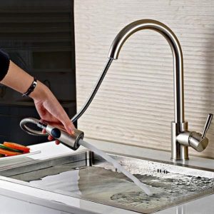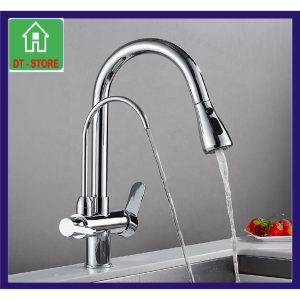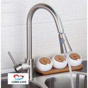 Vòi rửa chén, vòi rửa bát nóng lạnh Inox cần rút xoay 360 độ