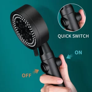 Vòi Sen Tăng Áp 5 Chế Độ, Tiết Kiệm Nước Màu Đen Sang Trọng, Tia Nước Nhỏ Áp Lực Cao