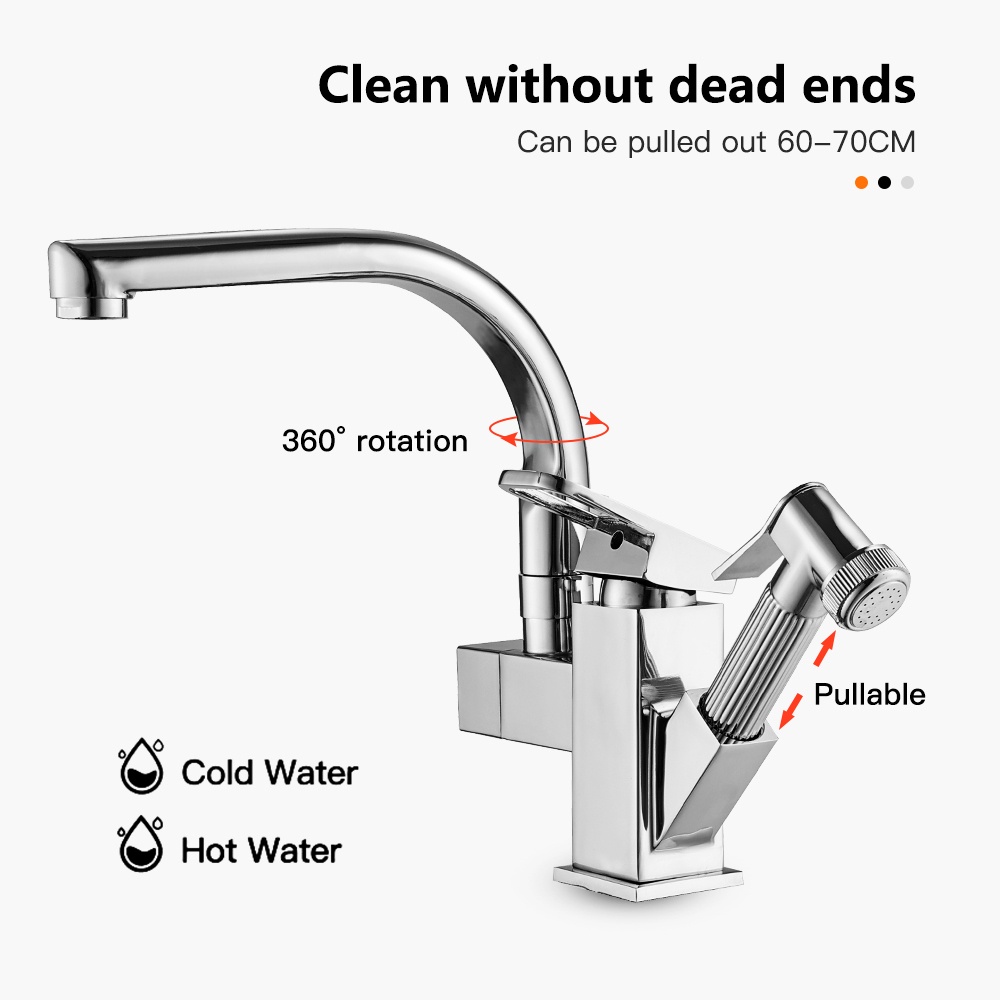 Bộ vòi rửa chén nóng lạnh kèm vòi xịt dây rút đồng