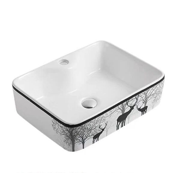 Kiểu dáng: sản phẩm này được thiết kế theo dáng hình chữ nhật, bề mặt trắng xen lẫn với các họa tiết nghệ thuật trang trí bắt mắt góp phần tôn thêm nét đẹp tinh tế, sang trọng cho không gian phòng tắm.