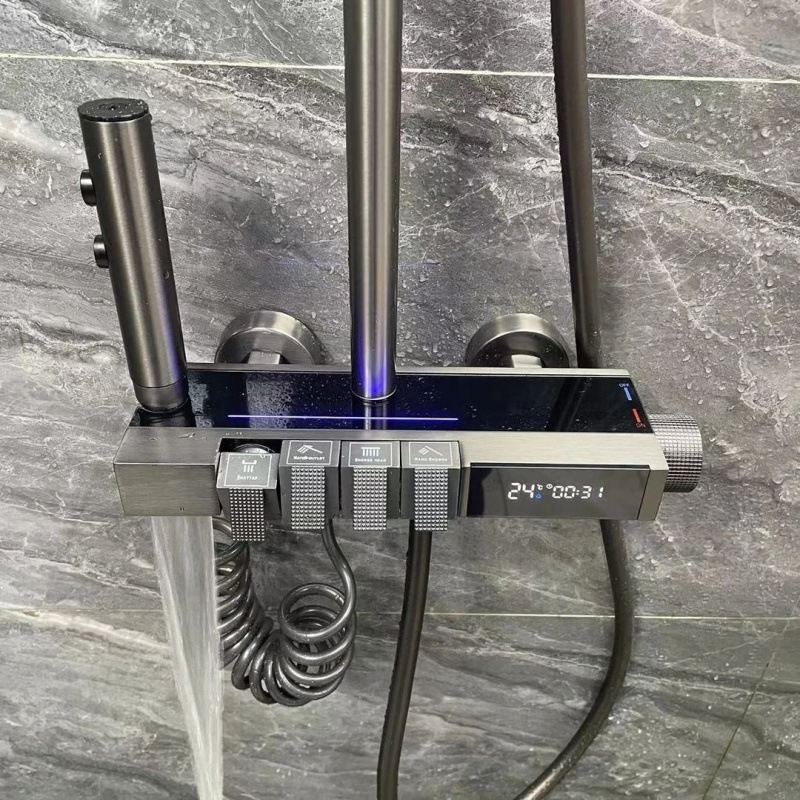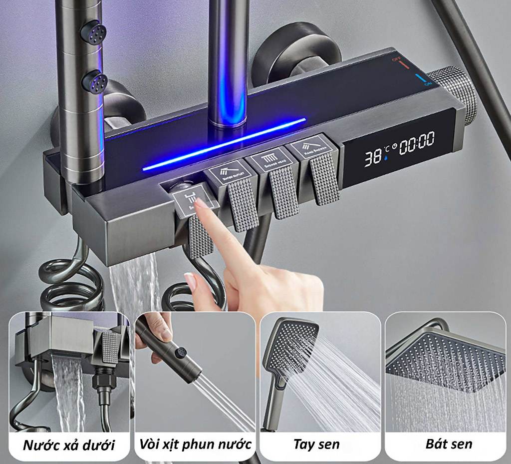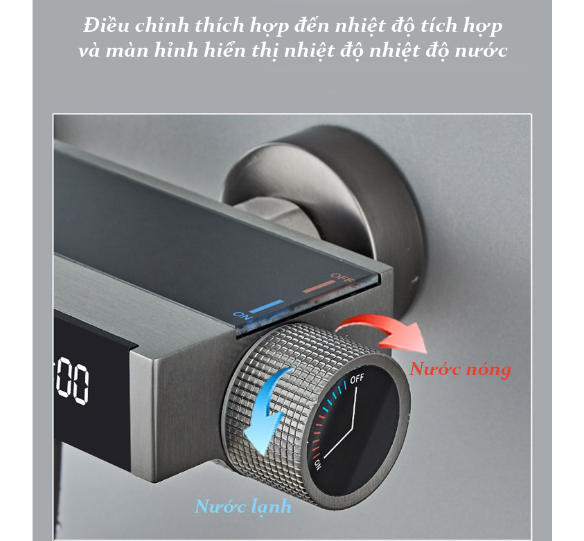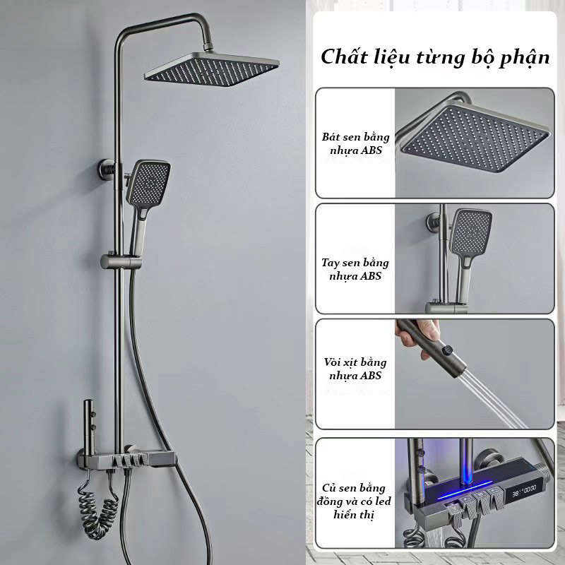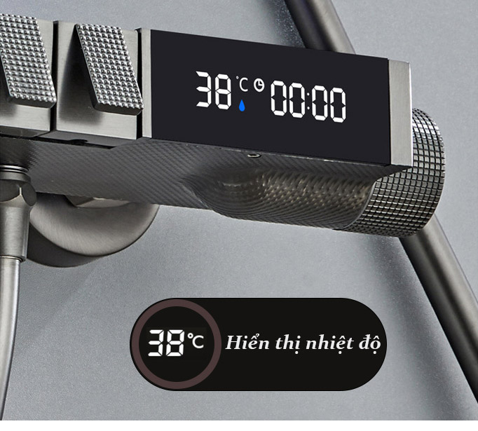 – Chất liệu: Đồng thau mạ nano xước tĩnh điện và hiển thị nhiệt độ trên thân củ sen tắm