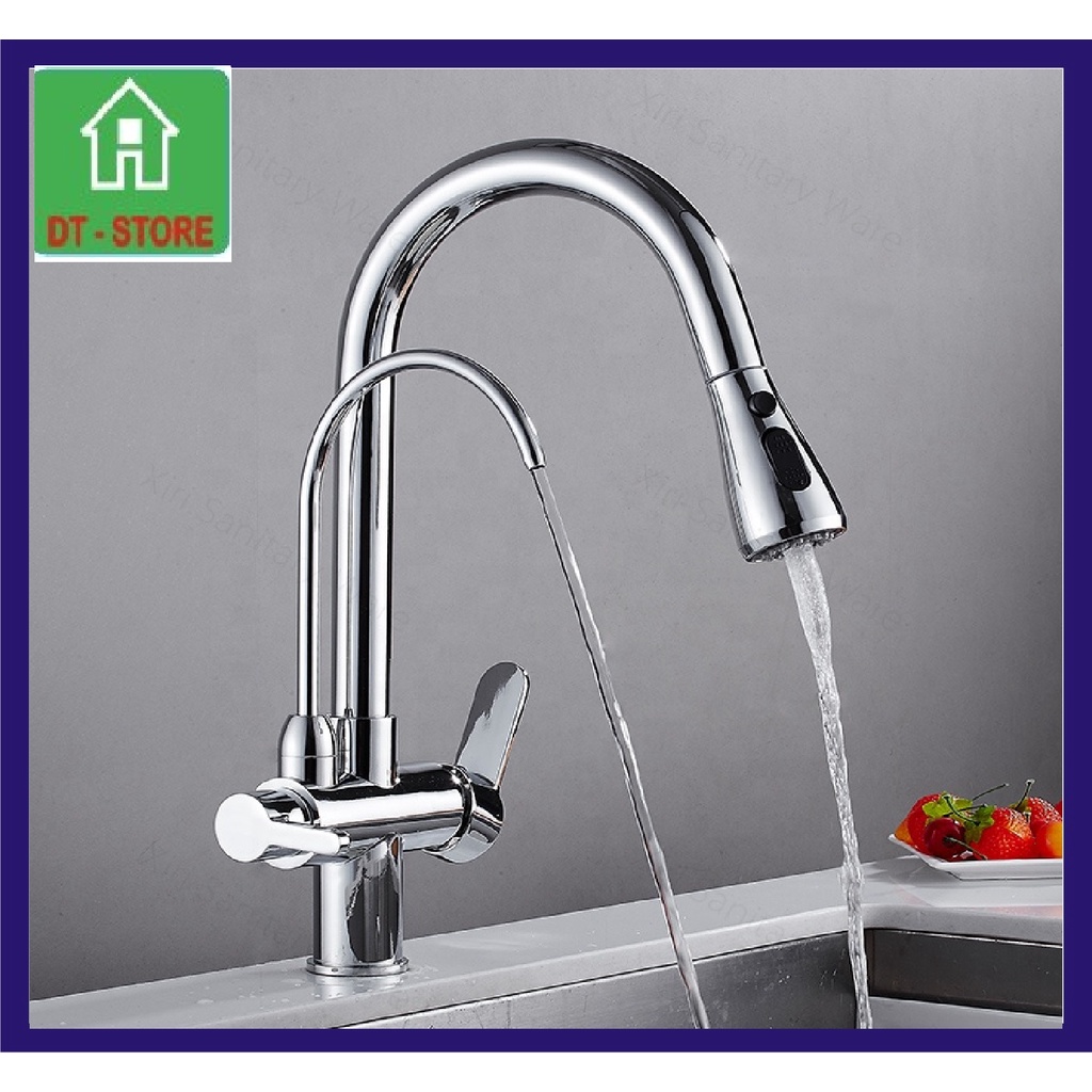 Vòi rửa bát, vòi rửa chén nóng lạnh dây rút KOBESI, tích hợp vòi RO sang trọng và tiện lợi